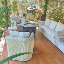 Furthermore, there is a tower room with a separate entrance, which can be used as a guest room or hobby room. The spacious, idyllic, and secluded tropical garden with a pool, pond, and various seating areas is unparalleled. The driveway can accommodate approximately 3-4 cars.